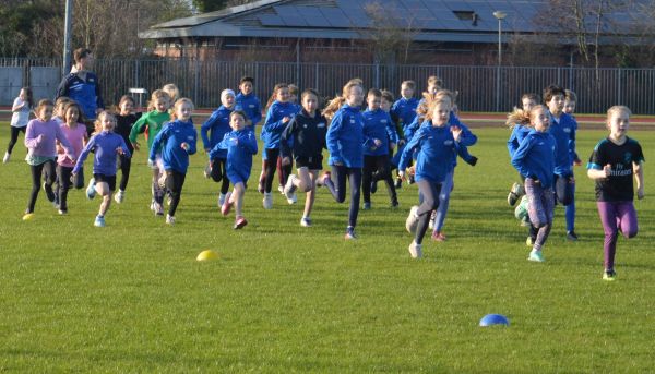 De A pupillen (U11 en U12) lopen 3 ronden = 1450 meter
